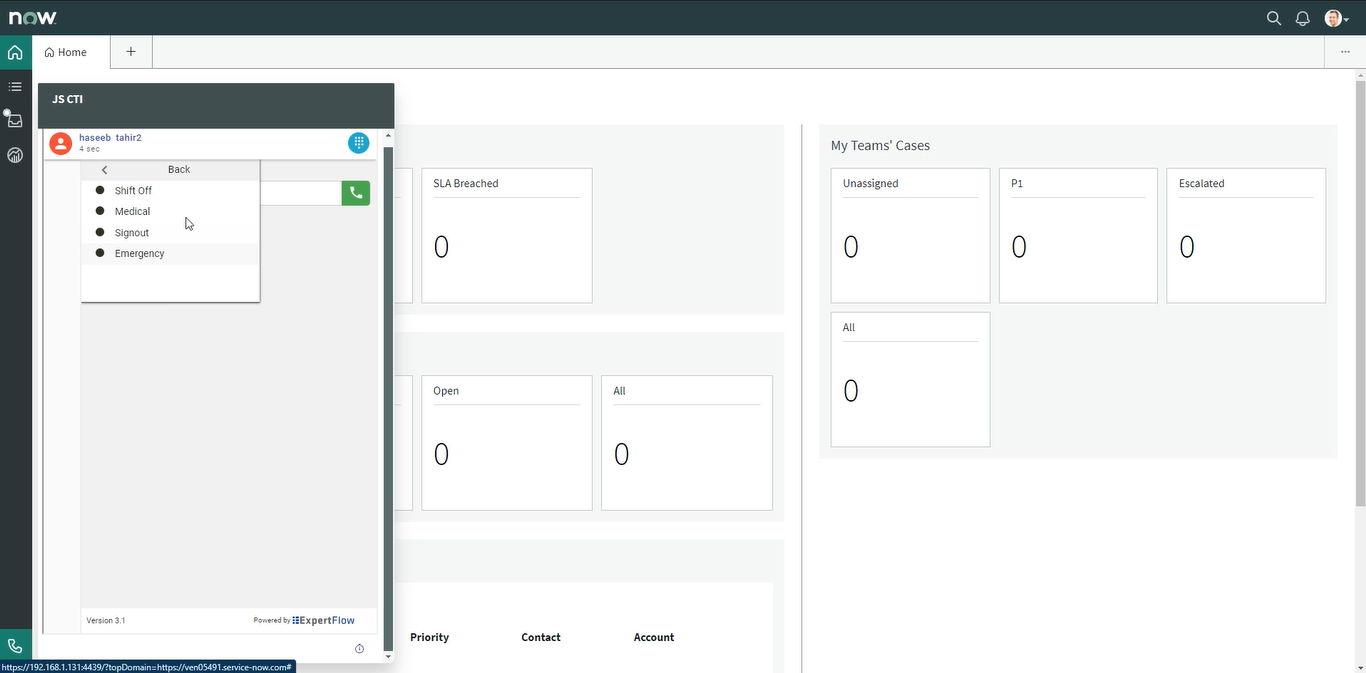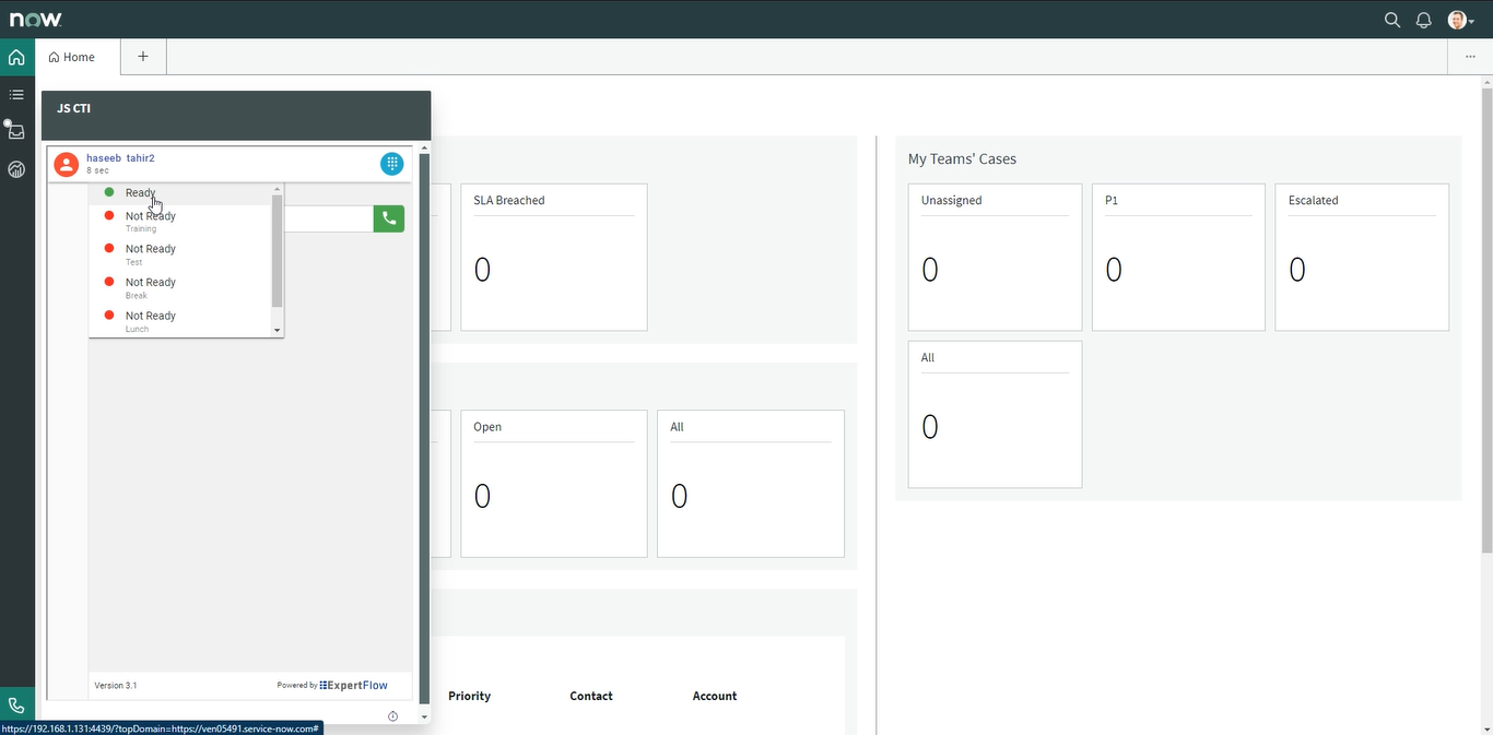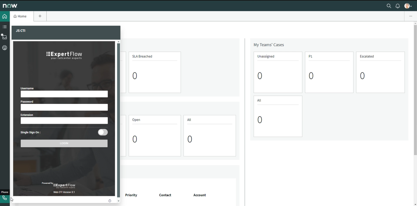 This embedded Web CTI Connector runs inside the ServiceNow CRM Web UI and enables agent/call controls within ServiceNow allowing agents to use the same CRM agent interface for all call handling and transfer. The Web CTI Connector has the following feature set: