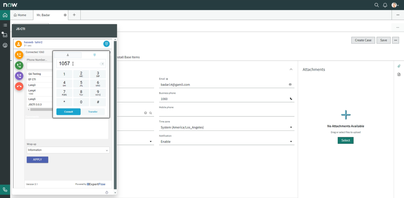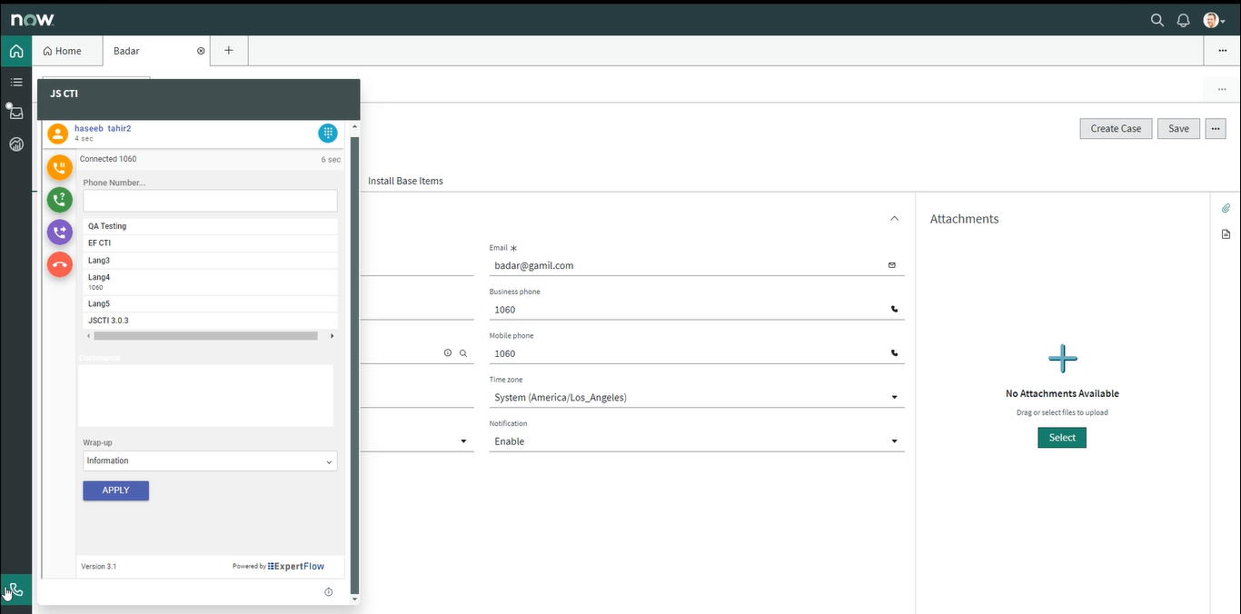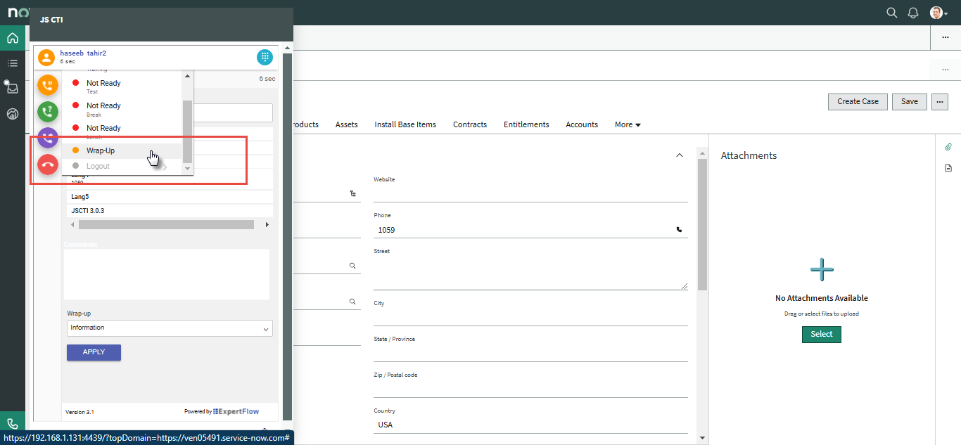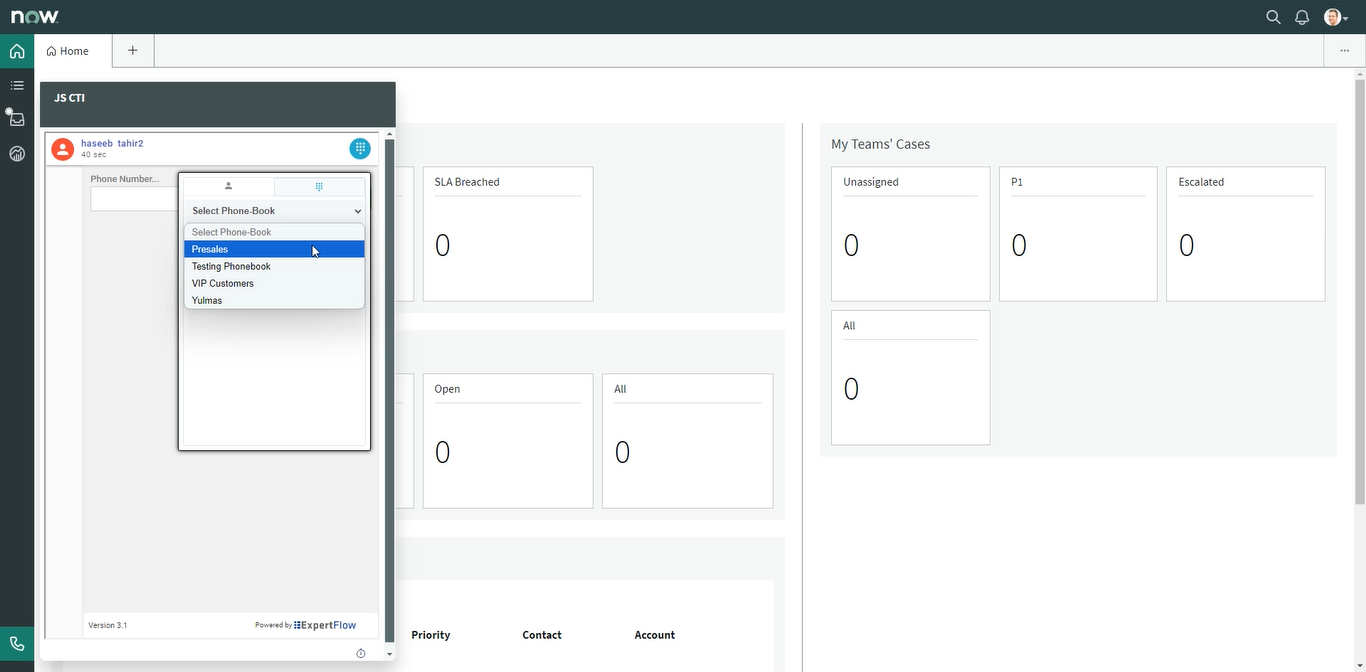 This embedded Web CTI Connector runs inside the ServiceNow CRM Web UI and enables agent/call controls within ServiceNow allowing agents to use the same CRM agent interface for all call handling and transfer. The Web CTI Connector has the following feature set:
