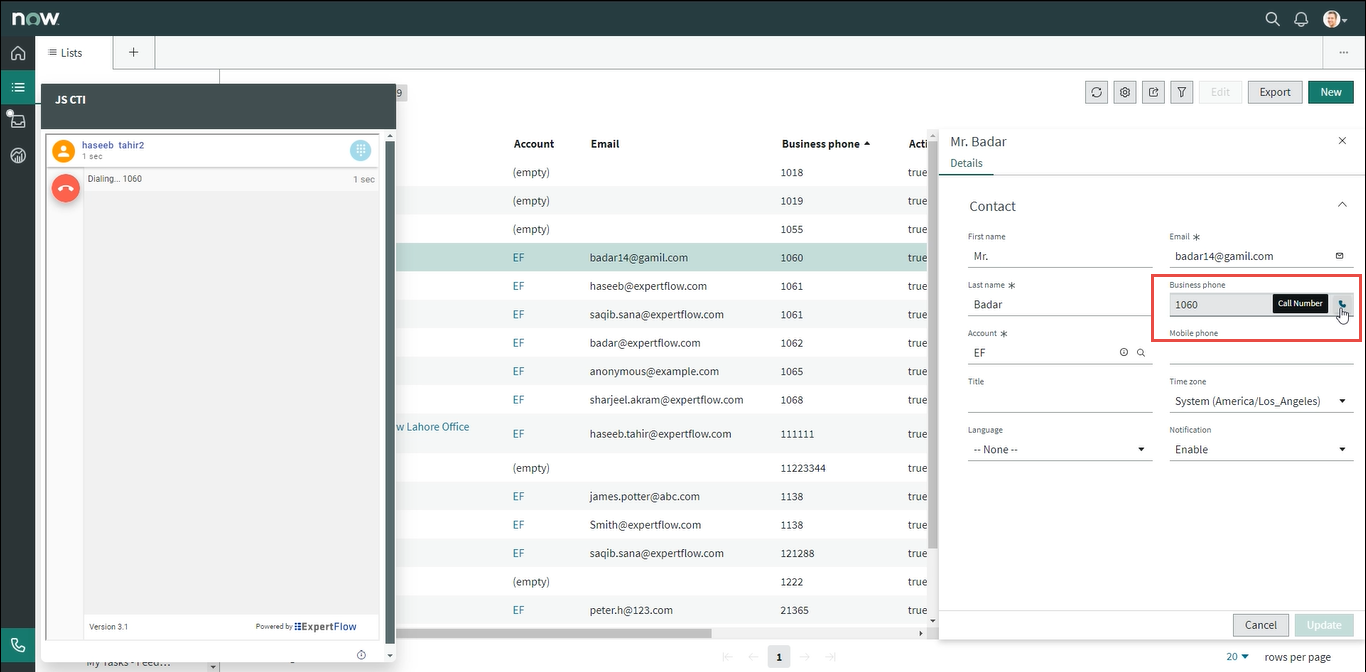 Click to dial feature allows the user to select any number corresponding to a record and an outbound call will be initiated to that number.
