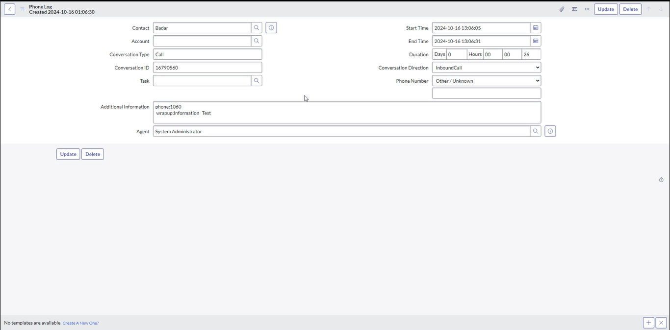 The system will also create an activity for the supervisor when he/she barges in the call. The activity direction for supervisor call would be INBOUND.