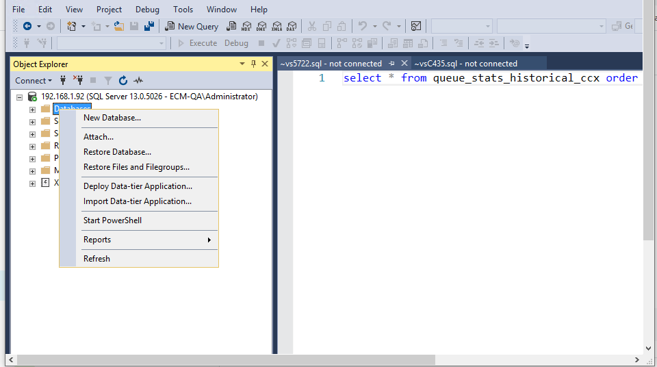 -Expertflow464 - Right-click on Databases and select New Database. Provide the name of your choice for the Database.