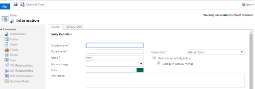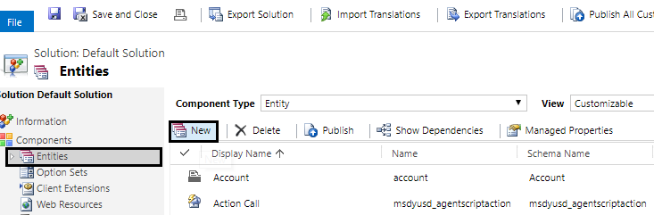 - Click on Entities & then click New. This will open the Entity-New Page.
