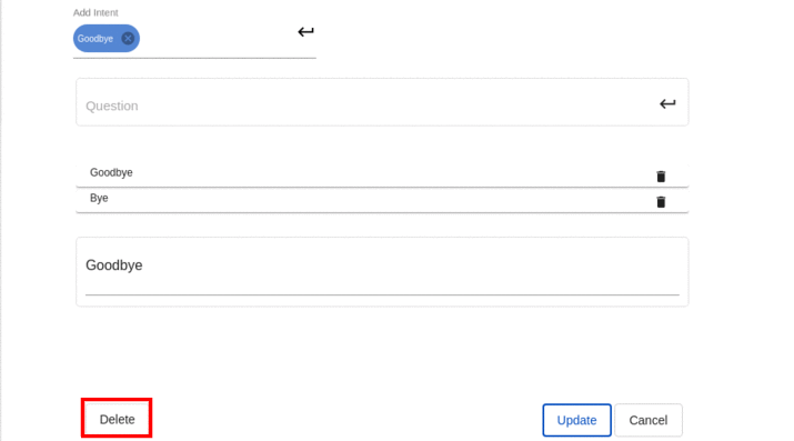 Intent | string(30) | An ‘Intent’ is a label of the question. It should be a distinguishable short phrase. For example, for a question “What are the office timings” the Intent could be “office_timings” An Intent can be of a maximum of 30 characters. |