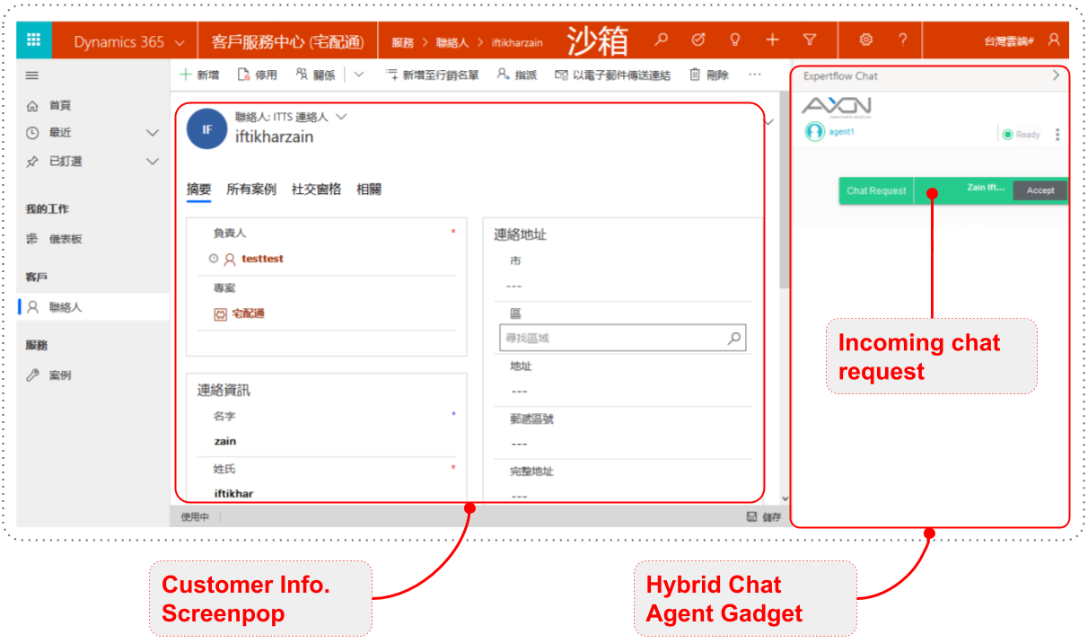 Hybrid Chat integrated with Dynamics CRM allows agents to use CRM as the primary agent desktop, see automatic customer screen-pop with each incoming chat request and, get a chat activity logged automatically at the end of the chat.