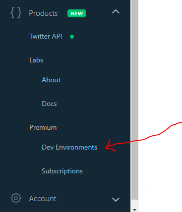 - Log in to Twitter Developer Account https://developer.twitter.com/en/portal/dashboard