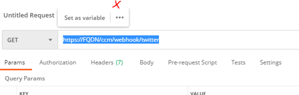 The Twitter endpoint in CCM will be as follows: https://FQDN/ccm/webhook/twitter