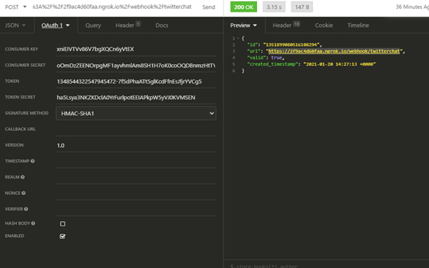 - Paste URL: https://api.twitter.com/1.1/account_activity/all/research/webhooks.json?url=https%3A%2F%2F2f9ac4d60faa.ngrok.io%2Fwebhook%2Ftwitterchat ..