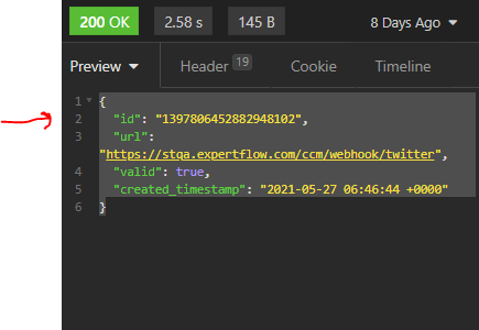 - Copy the Id returned in the response and save it in your ccm_variable.env TWITTER_ACCOUNT_I