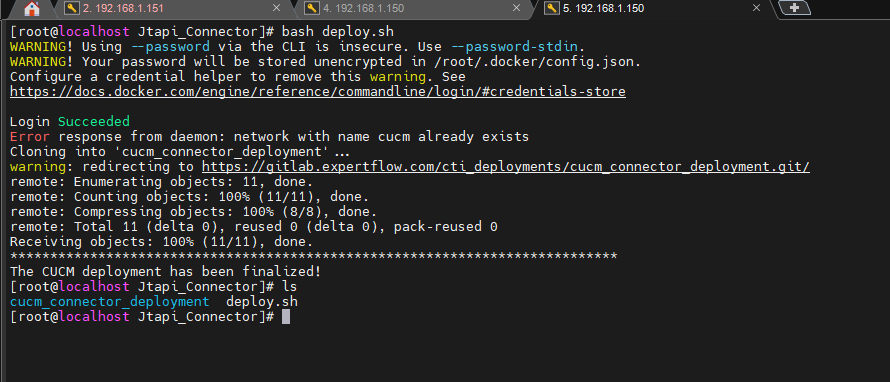 A cloned folder 'cucm_connector_deployment' can be seen on the command ls.
