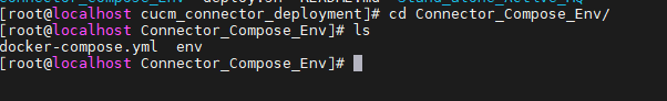 After amq installation, go back to the main repo directory 'cucm_connector_deployment'. And go into the connector folder 'Connector_Compose_Env'.