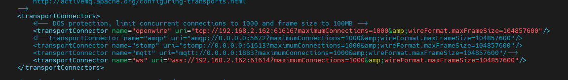 CODEdocker container ps -aEnter the following set of commands to reach to the activemq configuration file (activemq.xml), and set the urls as in the following image