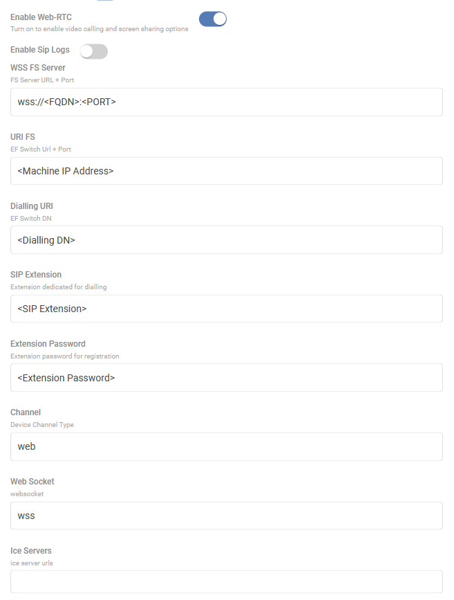 Enable Web-RTC | ![]() Note: Refer to the RTC Team for FS Configurations. |