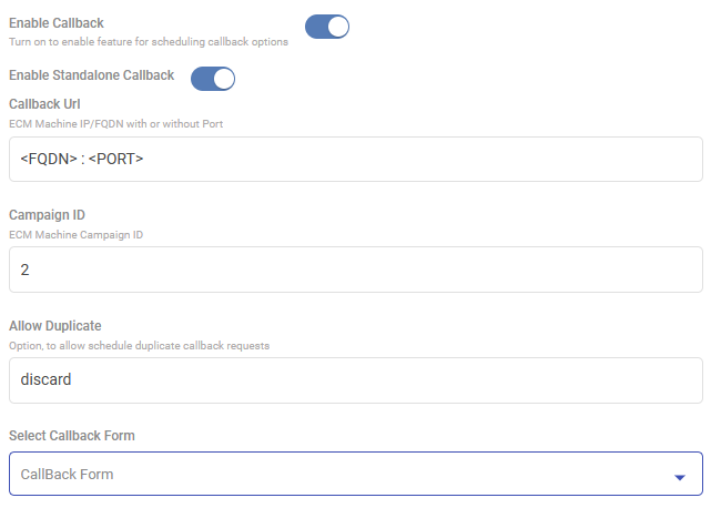 Enable Callback | ![]() Note: Currently, callback is only supported with Expertflow’s ECM. |