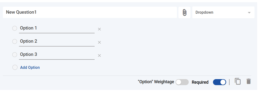 Weightage only applies to Multiple Choice (MCQs) and Dropdown (dropdown) type questions.