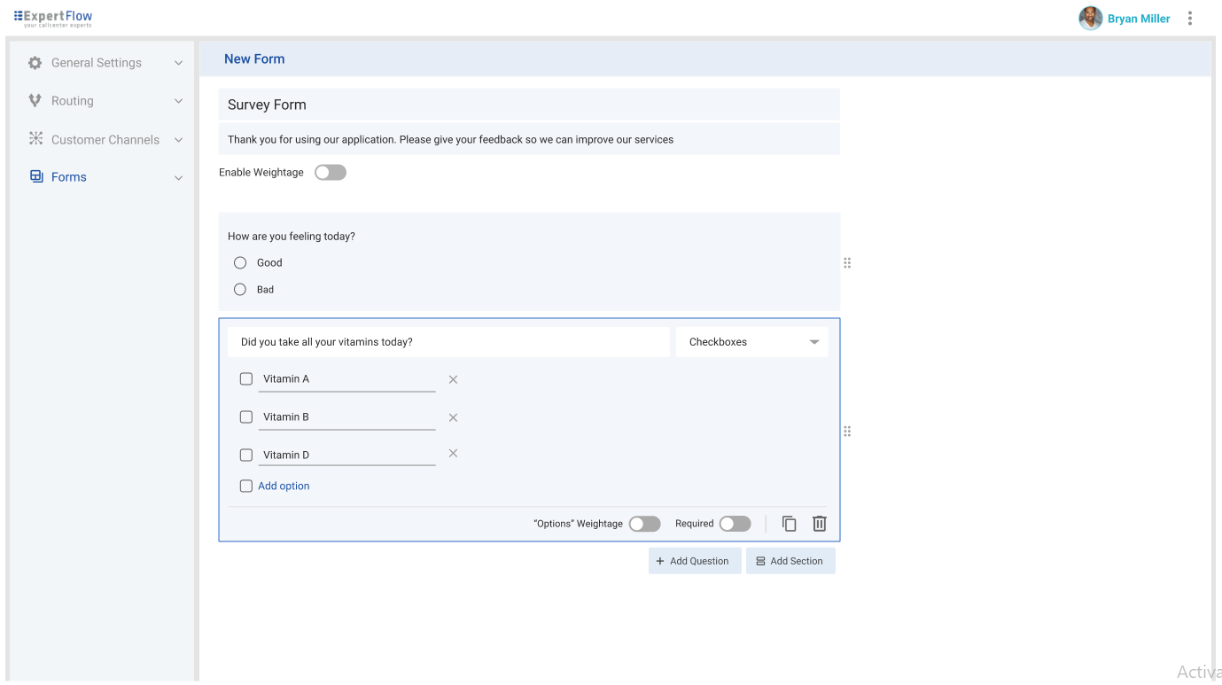 Enables business administrators with comprehensive control over form creation, management, and utilization. This offers flexible options to introduce new question types, structure content using sections, and assign weighted scoring to responses, which elevates both user experience and the depth of data insights.