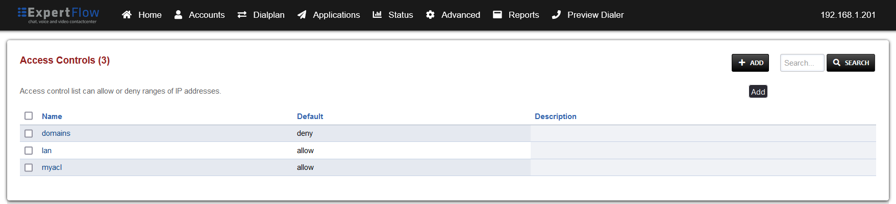 At the bottom add an entry where the the Type is set to ‘allow’ and the CIDR field contains the address of the SIP Trunk.