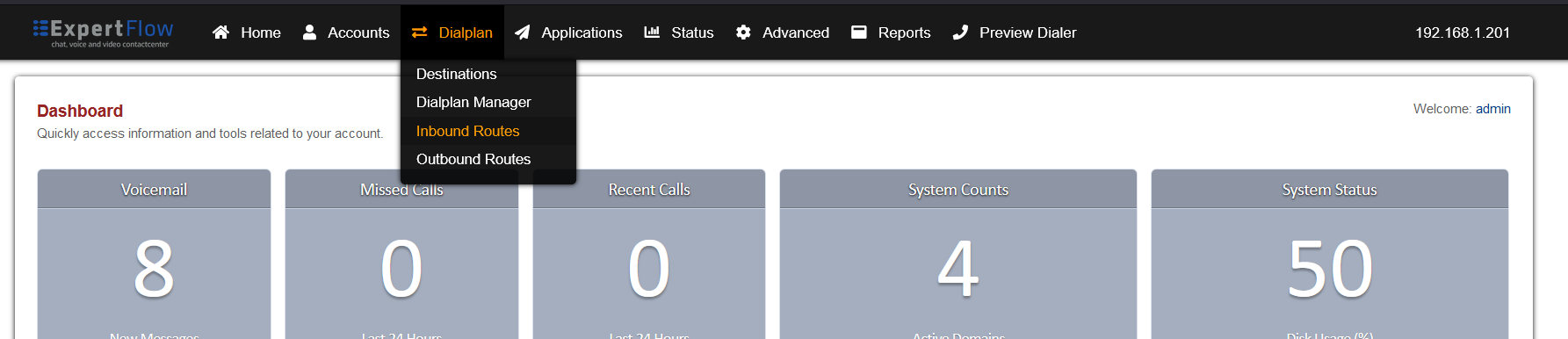 In the Destination field set the inbound dialing number provided by the SIP trunk provider in the format ^dialing_number$.