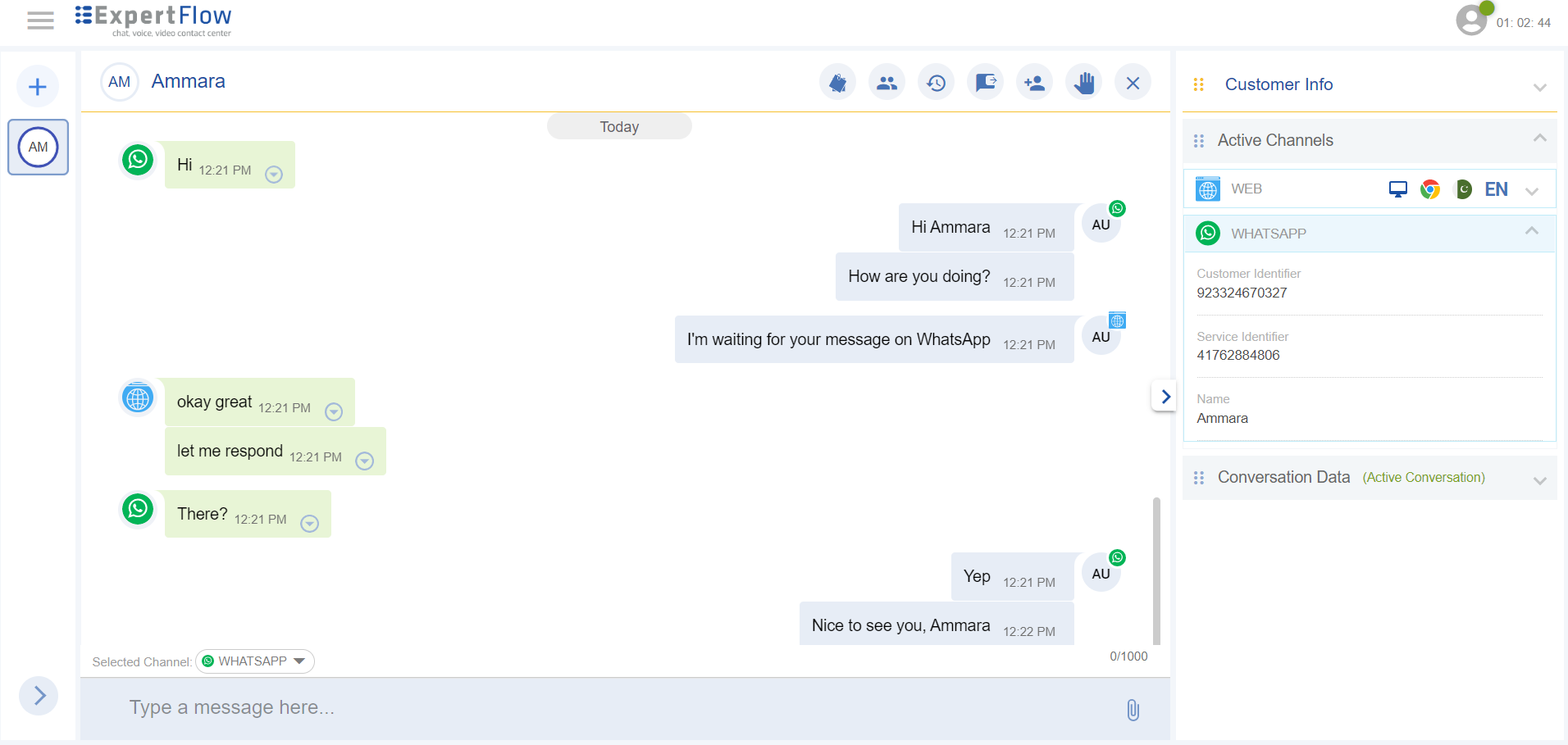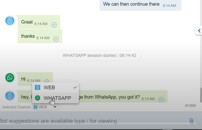 Agents can initiate conversations with customers at any time. In future updates, this will be restricted for agents not to initiate a conversation with a customer after 24 hours to align with WhatsApp 24-hour session limit policy.