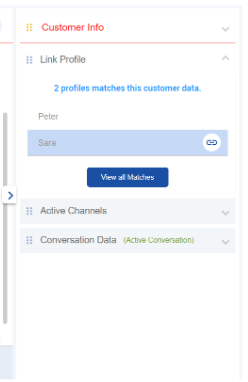 This is the case when multiple matches were found against the customer's channel identity. This happens when the same channel identity exists in multiple customer profiles. In this case, the system creates an anonymous profile and returns all matched customers as suggestions to the agent. The agent will see all matches under another pane, Link Profile pane. The agent can select the right customer from the pane and choose the Link option against the desired customer.