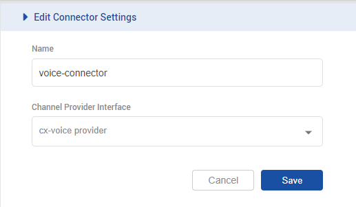 - Add a channel connector for the provider configured above for the CX_VOICE channel type on unified-admin.