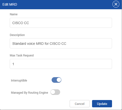 - Set the ManagedByRoutingEngine flag to true for the default CX VOICE MRD.