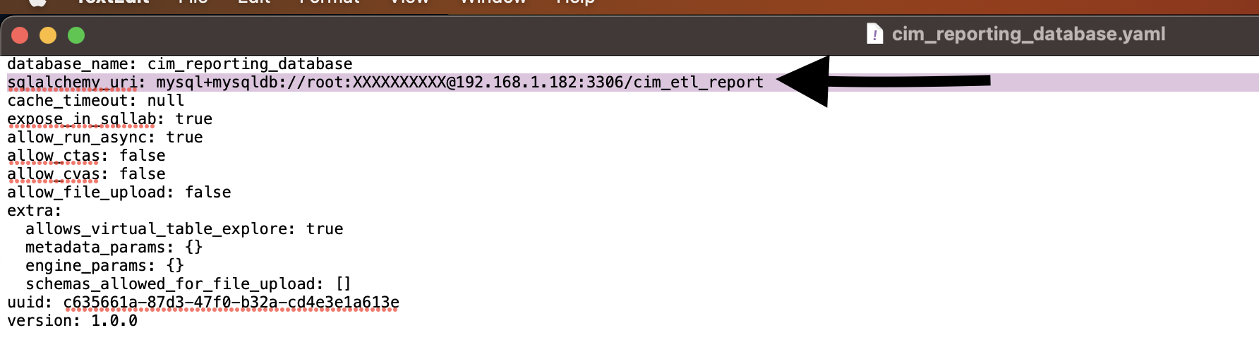 Goto the folder "databases" and edit the file "cim_reporting_database.yaml".