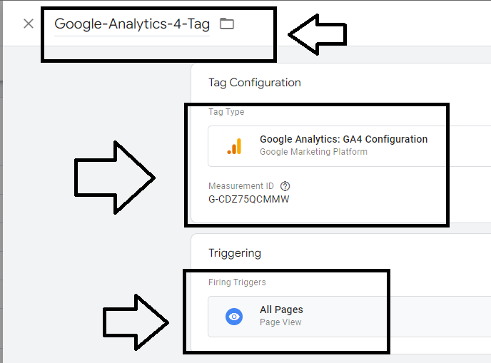 - Create New Tag, Name the tag, select Tag Type "Google Analytics: GA4 Configuration", add Measurement Id from the GA4 account and also check the check box of page view event and fire the tag on Page View Trigger.