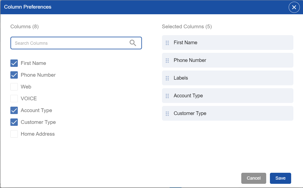 Select columns to show in the Customer List