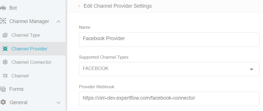 Configuring the Facebook Channel in Channel Configuration