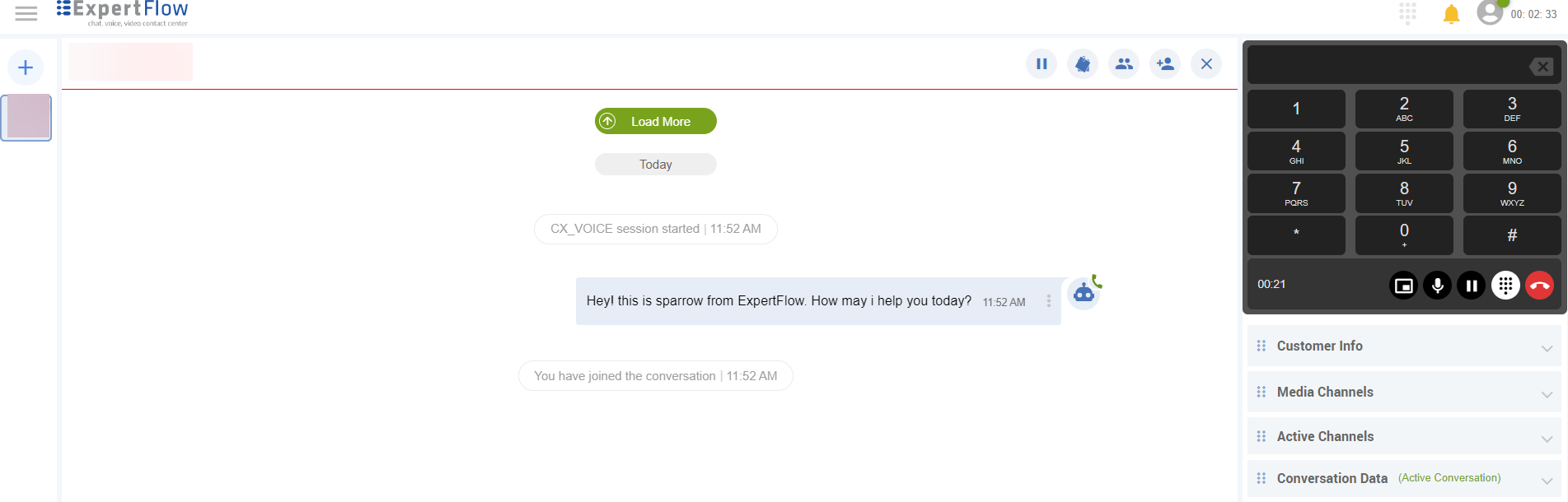 When agents answer a call, they have a clear indicator showing the active call status, in a fixed location and the conversation view is open for agents to perform any activity.