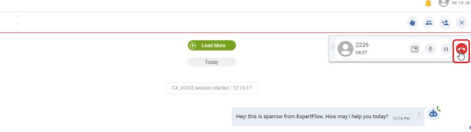 The agent can end a call using the End Call button. This will end the call leg between the agent and the customer.