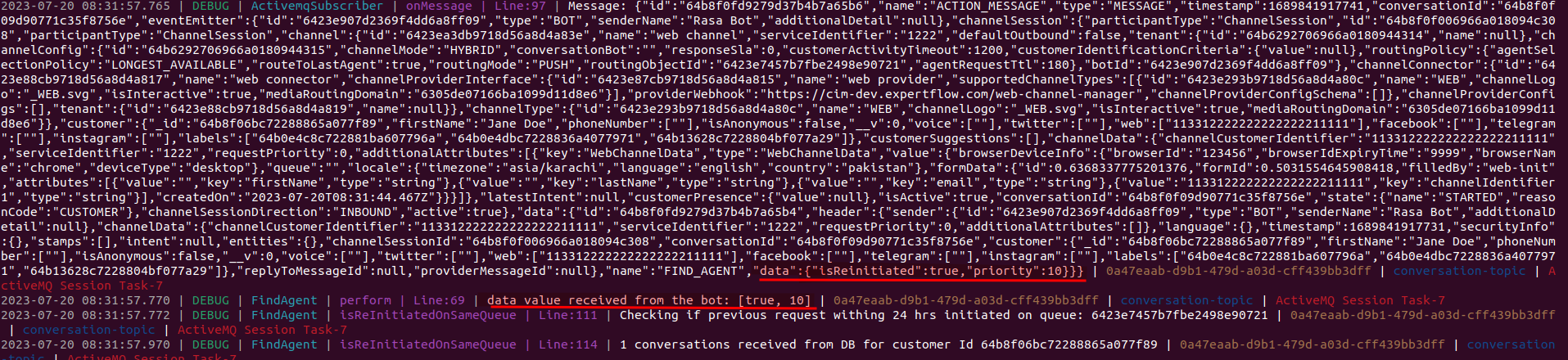 You can verify the logs of conversation-manager as well. It receives the data field from the bot which has the 'priority' and 'isReinitiated' flag. If the latter is set to 'true', this implies that the route re-initiated chats on priority feature is active.