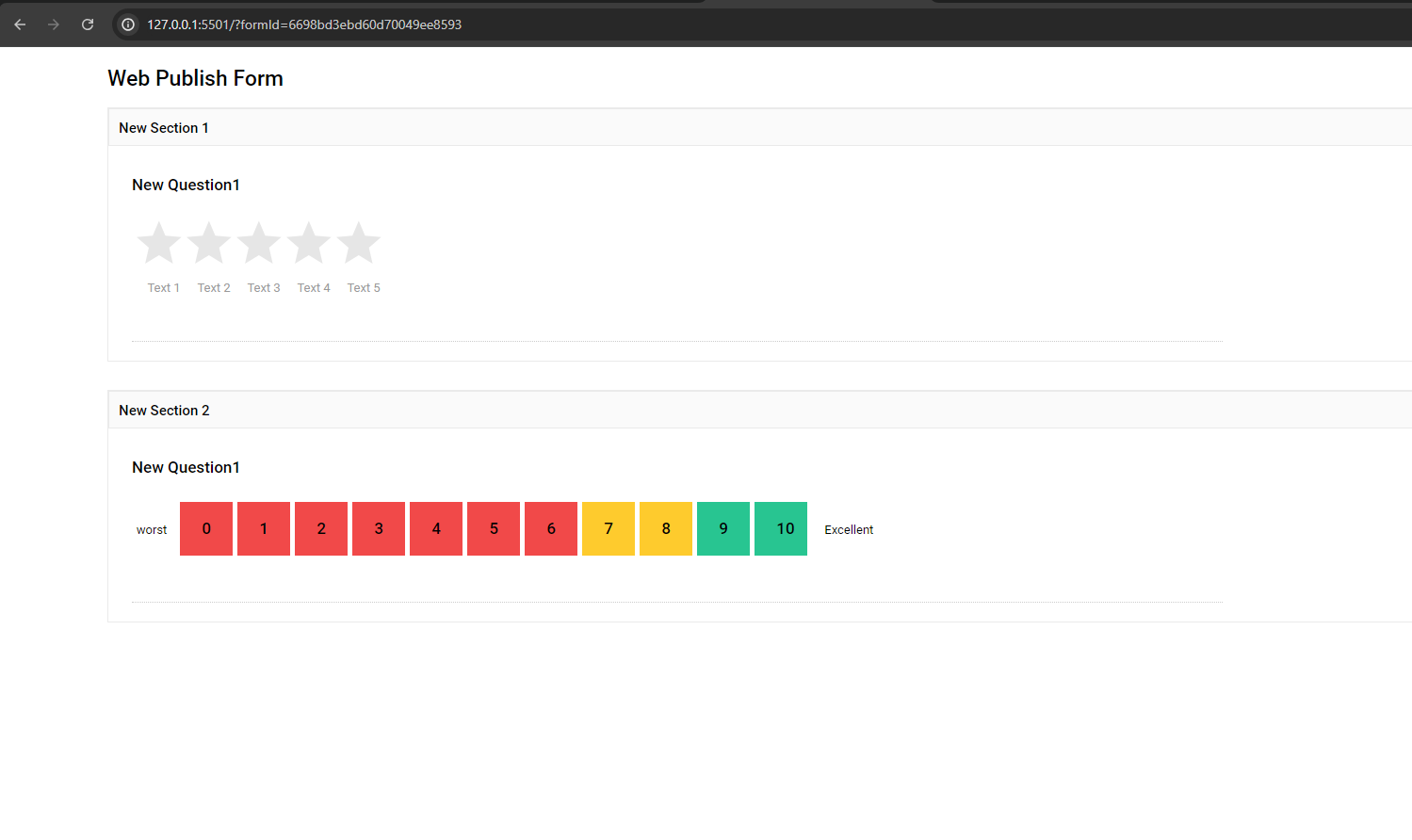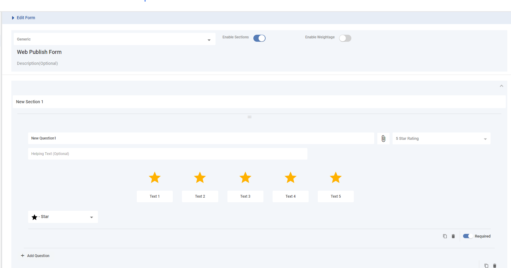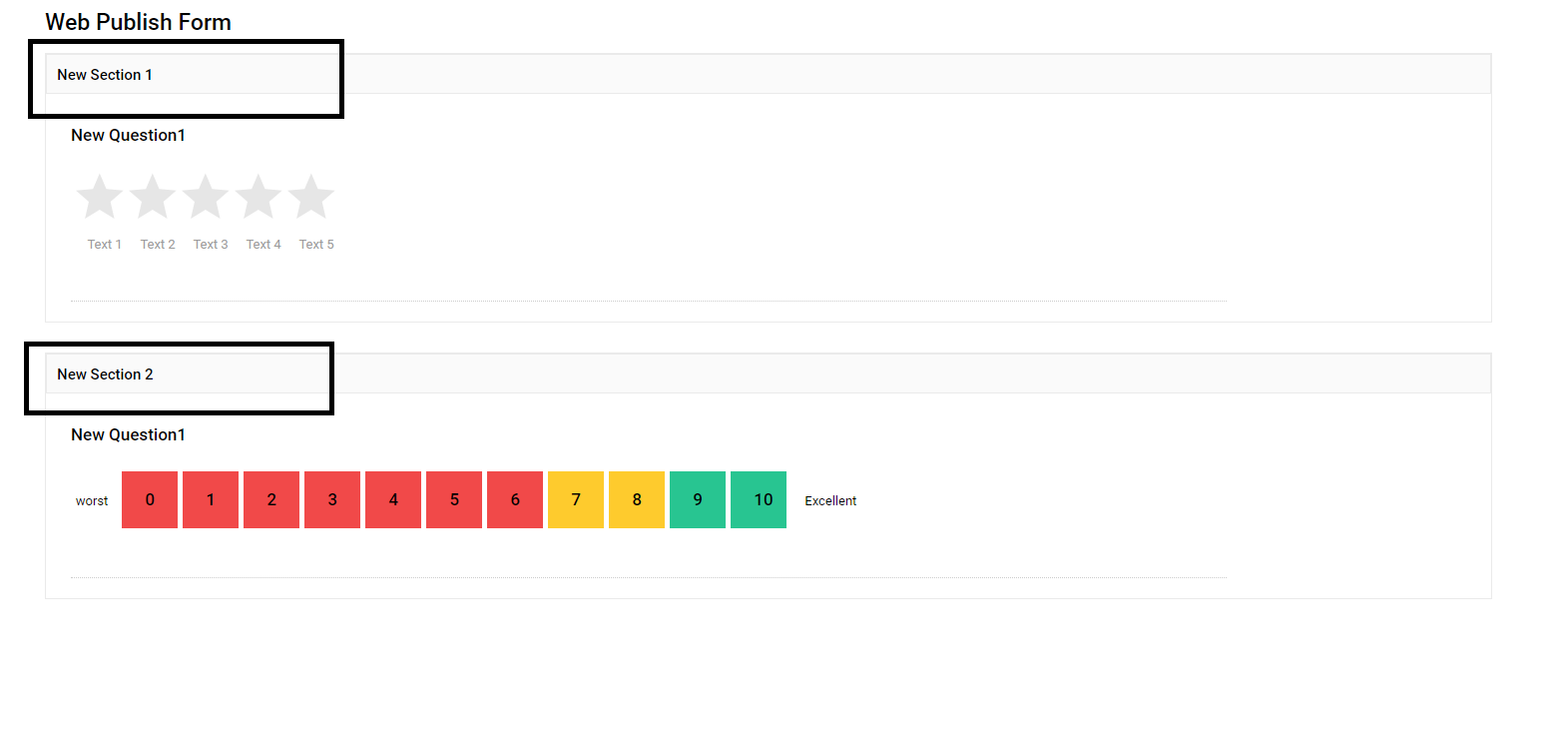 I am adding two sections, and in each section, I have added attributes: one of type 5-star rating and another of type NPS.