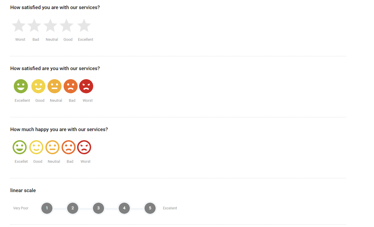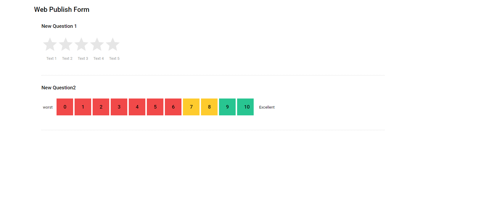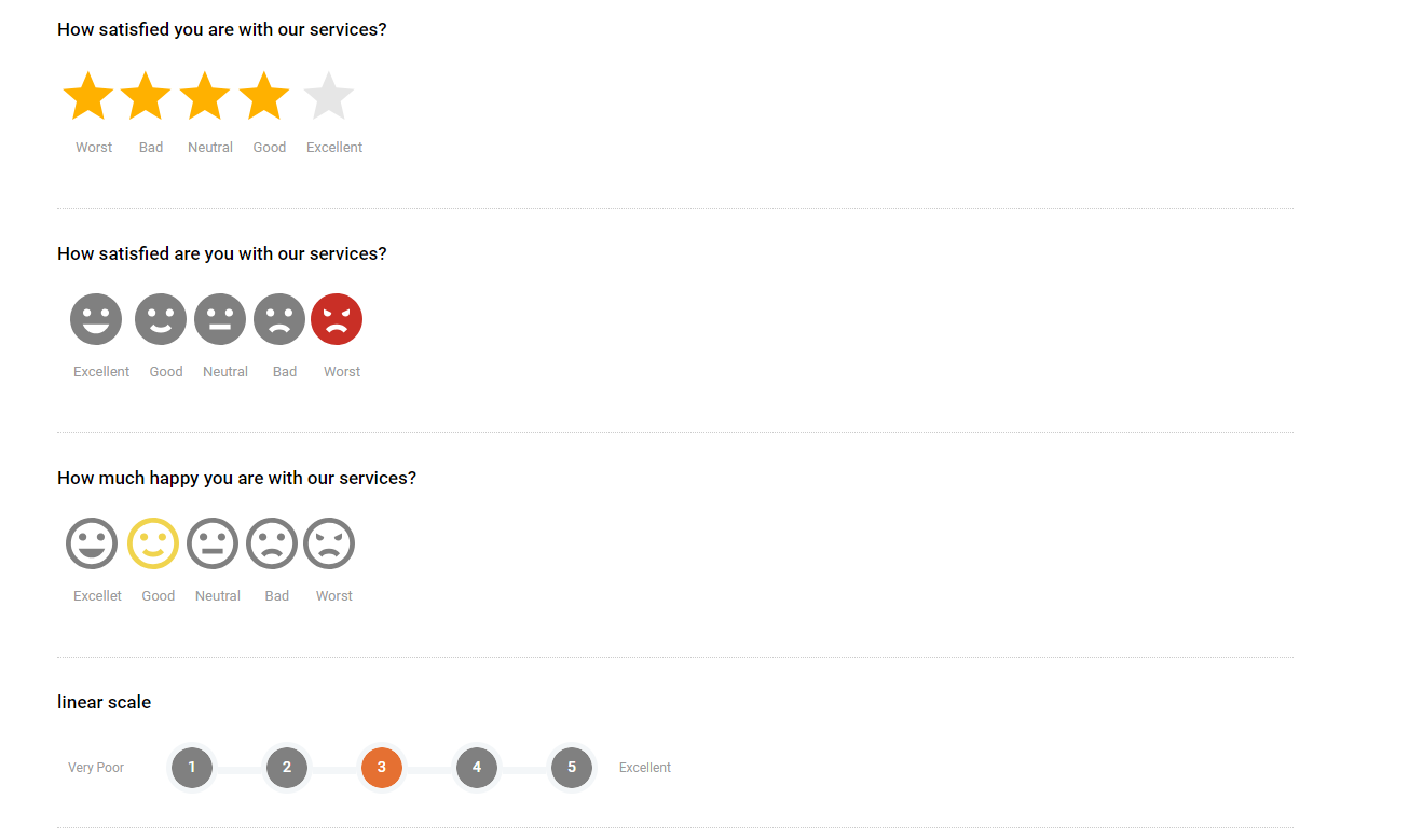 Rating Bar and Radio Button type. Before clicking on these attributes they look like this,