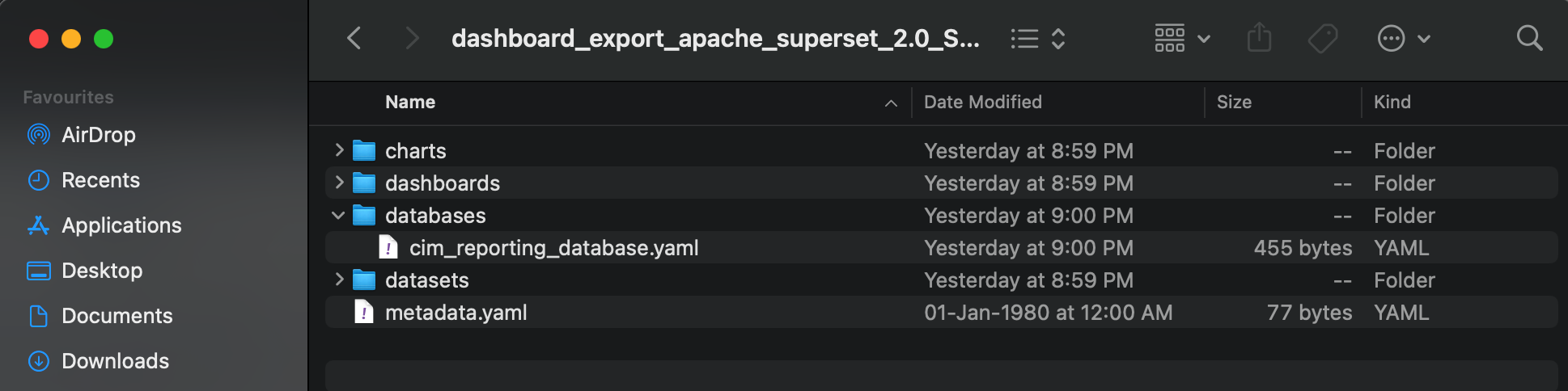 1. Download for MSSQL → dashboard_export_apache_superset_2.0_mssql.zip.zip for MySQL → dashboard_export_apache_superset_2.0_mysql.zip.zip file and place it in any directory of your choice.