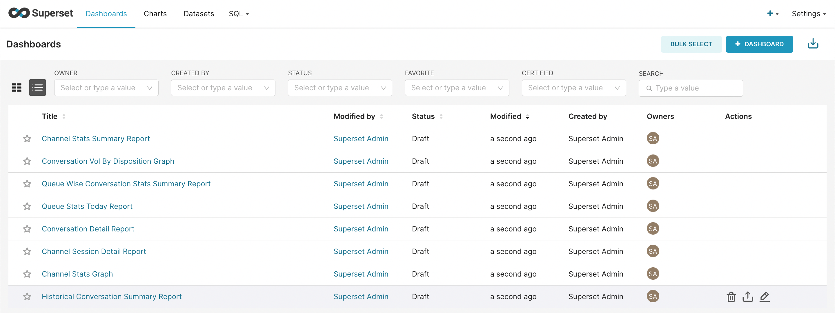 Don't import both MsSQL & MySQL reports on the same Apache superset server.