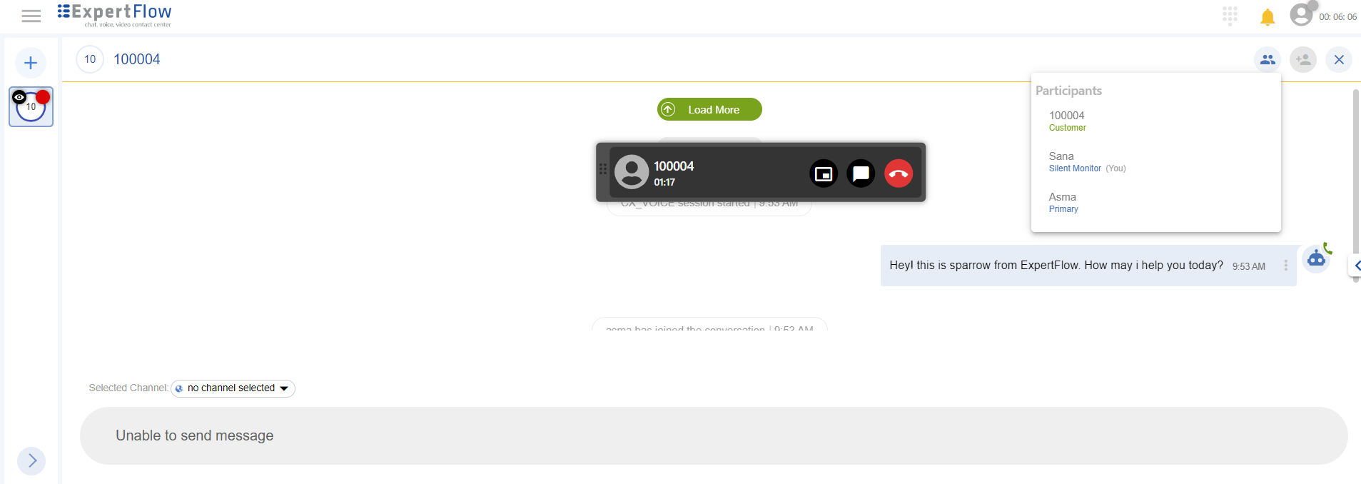 If a Silent Monitor is already in progress on chat for a conversation, and the CX Voice session gets active afterward, the Silent Monitoring will only be limited to chat.