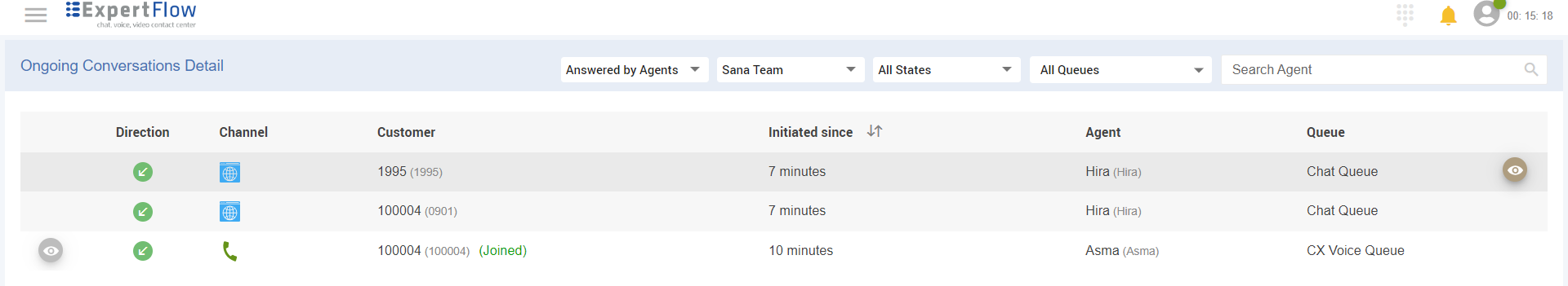 Ongoing Conversation Detail Dashboards View on Silent Monitoring