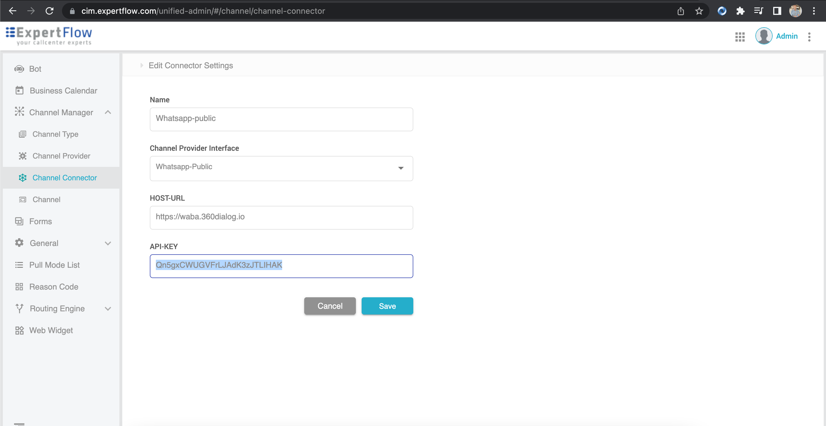Then we need to set their values in "channel-connector" on unified-admin.