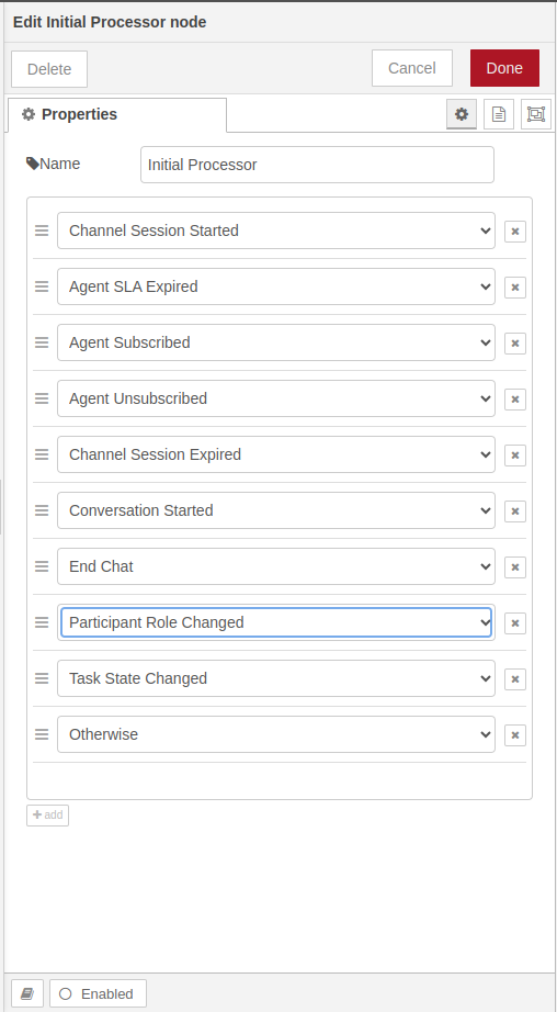 Any flow that started with Initial Processor node, must end with this Final Processor node. This node sends a response back for the request received by Initial Processor node. Unlike Initial Processor node, you can have multiple copies of this node. So you can either end the flow for all intents with a single Final Processor node or with multiple of them.
