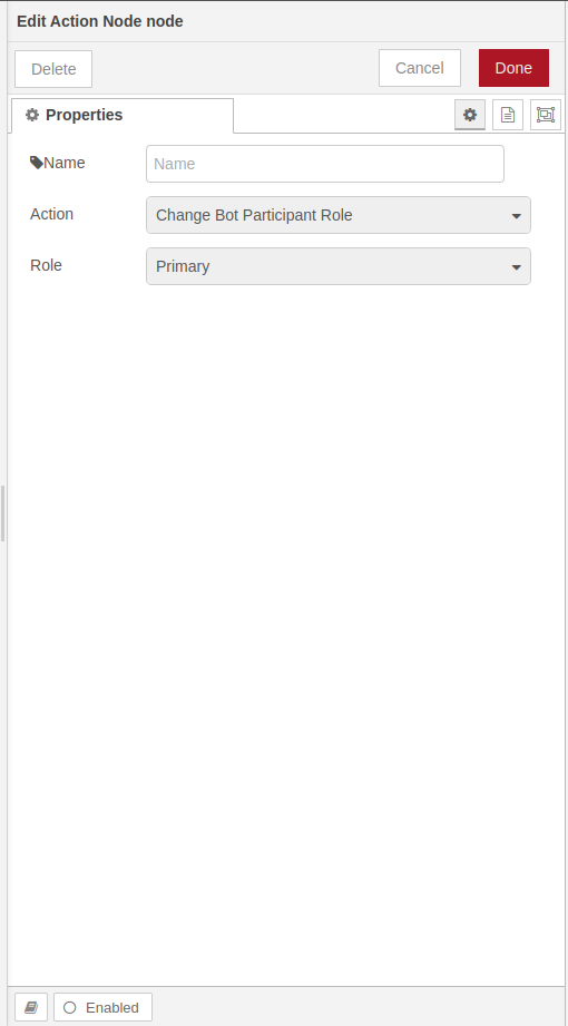Action node contains a set of actions that can be taken on the conversation. Each action has different configuration parameters which are reveled upon the selection of that action.