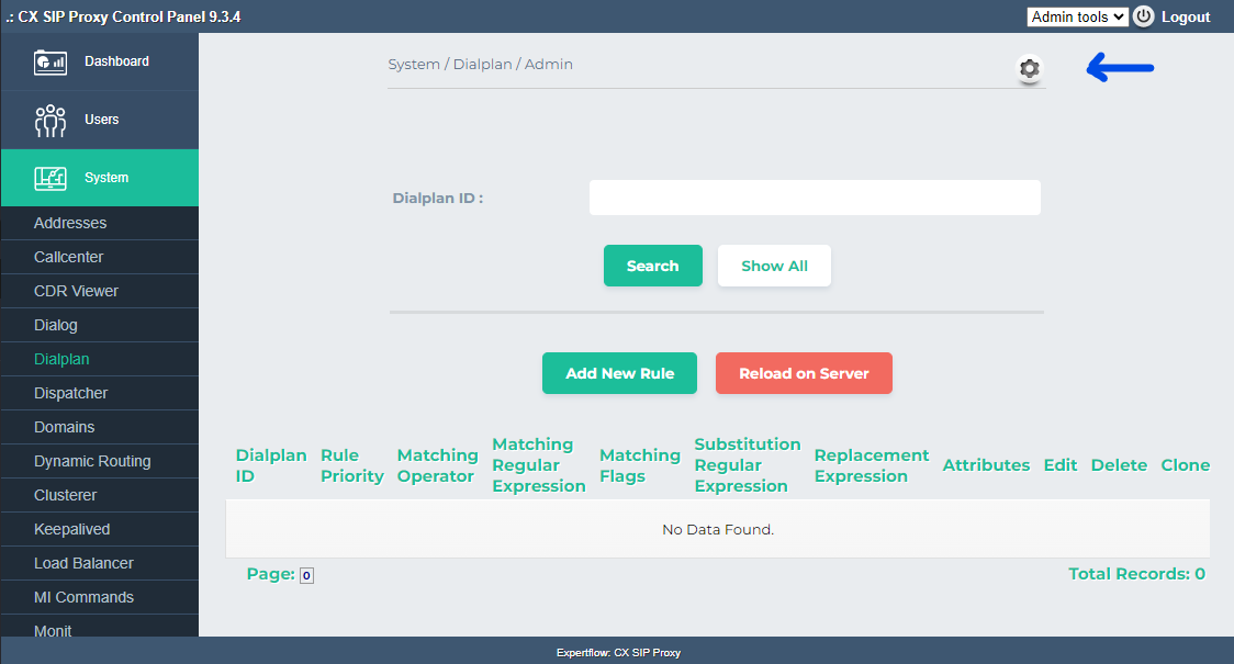 Step 3: Adding attributes in the Dialplan tool via EF SIP proxy control panel