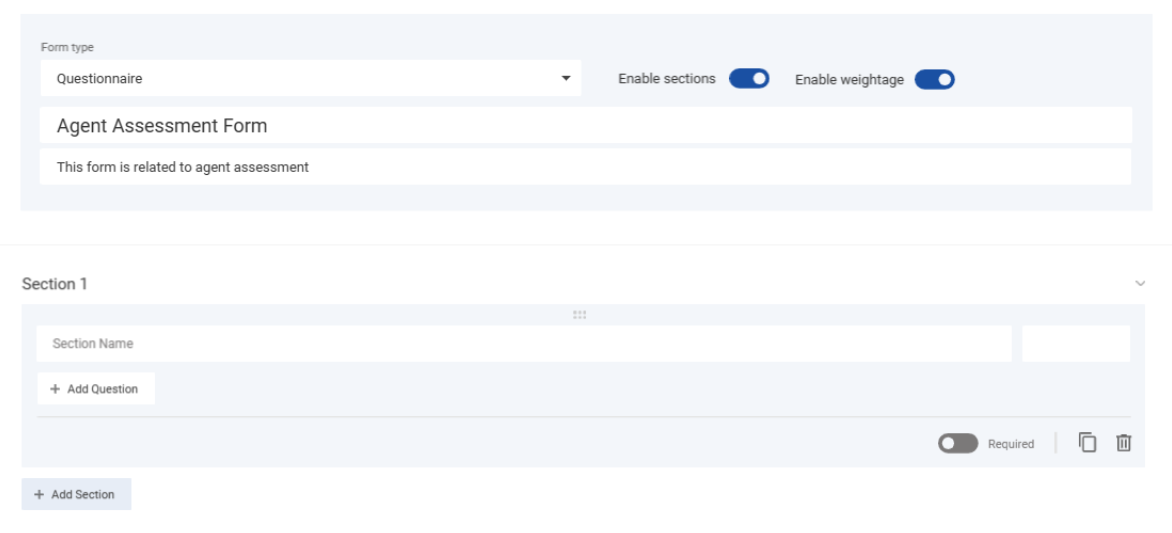 The CX form builder is developed keeping in mind a wide range of different form requirements for different use cases, including, but not limited to pre-conversation forms, post-post conversation surveys, quality management questionnaires, conversation wrapups, login forms, etc. The form builder provides a wide range of questions types/ attributes with validation checks e.g. text fields with variable lengths, MCQs, Alpha Numeric, Yes/ No, Email, IP, Number, Password, Phone Number, Positive Number, URL, File upload (Attachments), Date and time, Time, 5-star rating, NPS (Net Promoter Score), etc. These questions can be grouped into sections in combination with weightage calculations for QM forms. Additionally, the form builder allows for attaching an audio prompt to a question to be played back in case of IVR. The upcoming versions of the form builder will include form versioning, multiple languages, and sub-categories for wrapups.
