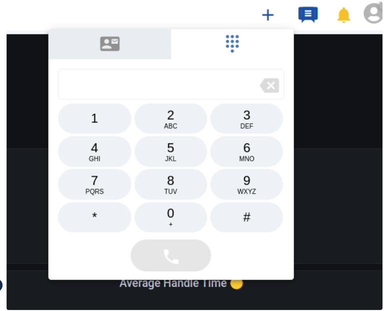 Agents can initiate contact with a customer by clicking the '+' icon at the top. This will drop a panel carrying two options, to dial a number, or choose a customer to be contacted from the customer list.