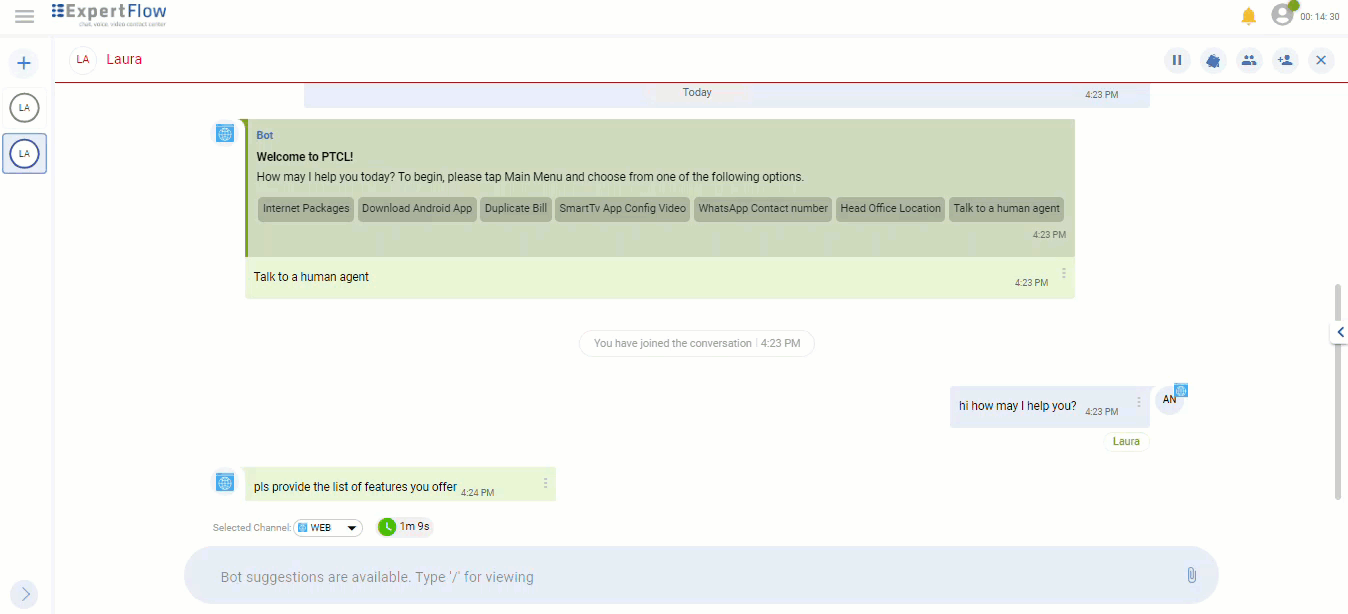 9. The customer receives the notification that ‘the conversation is resumed now’