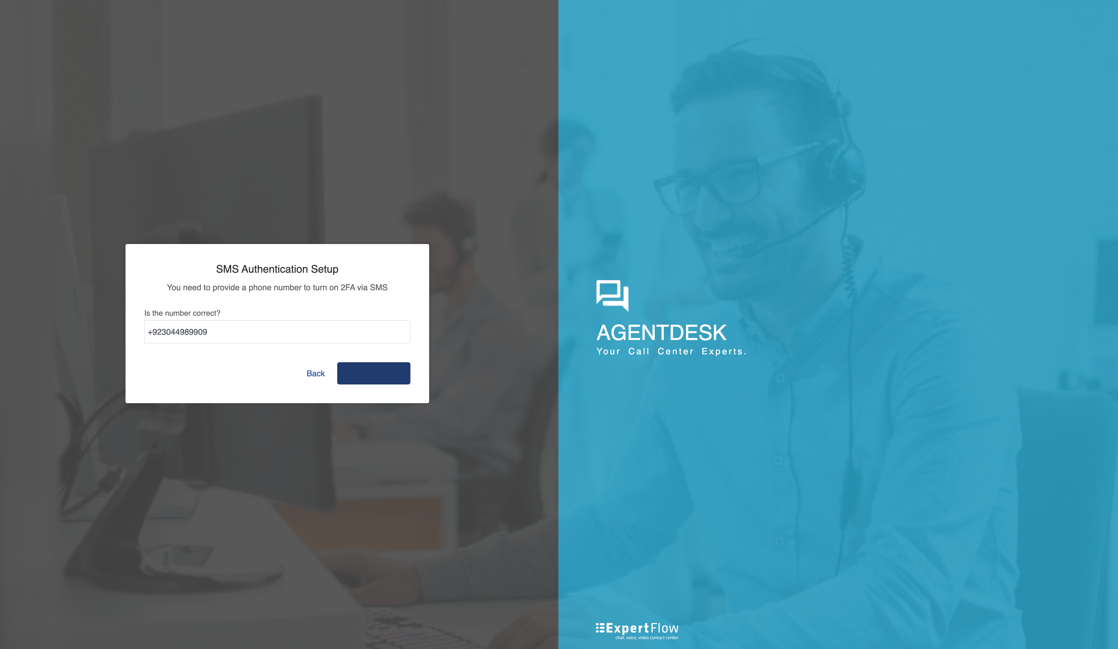 2. User will be redirected to another screen (sms image 2) and will be prompted to enter his phone number in the input field shown to him for 2FA registration.
