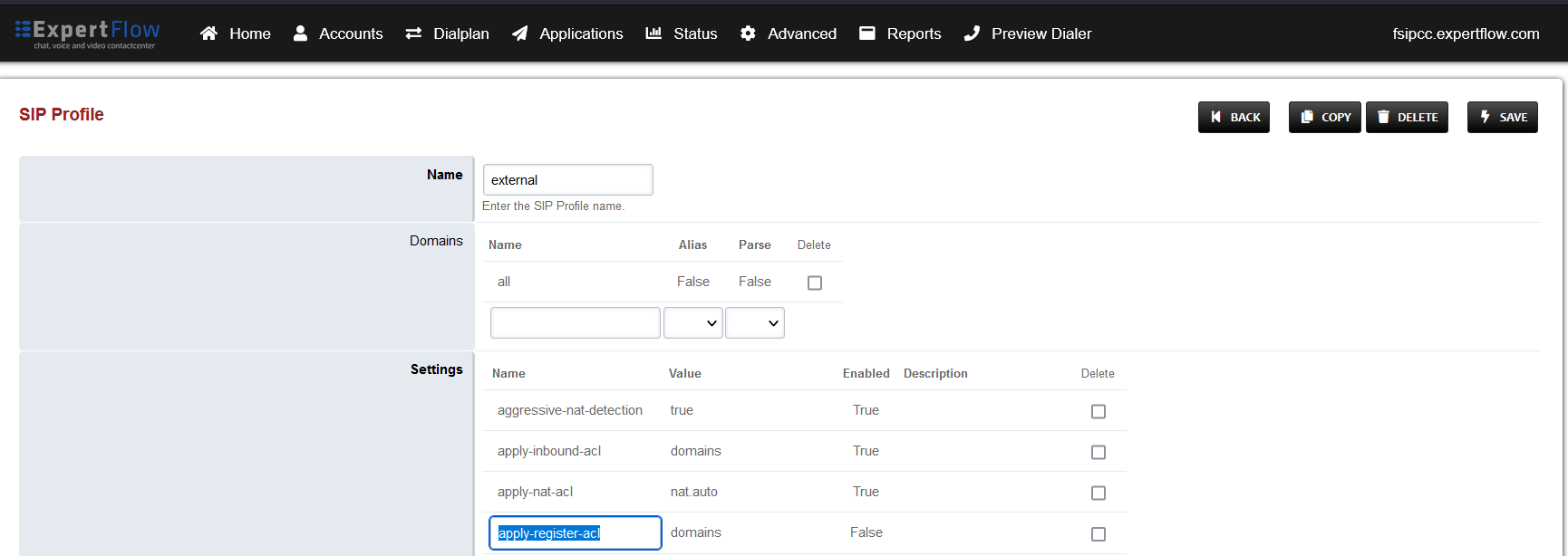 5. Register: Set to True. Set to False for IP-based SIP trunks.
