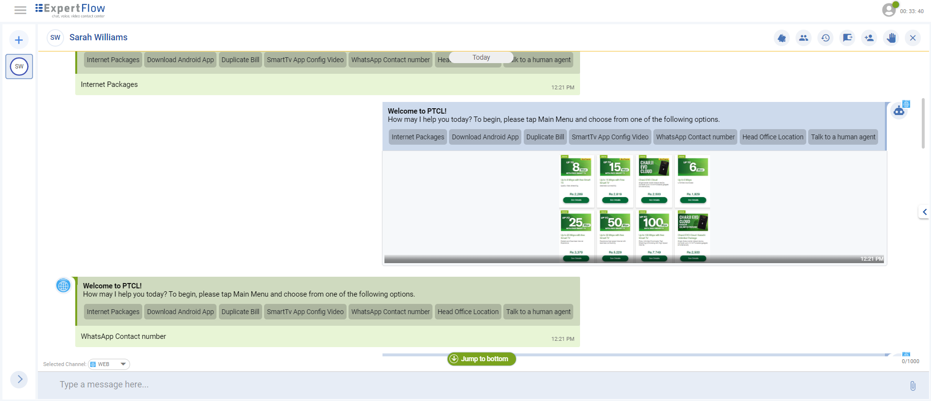 Expertflow CX's AgentDesk is a browser-based application that serves as a unified agent workspace for handling customer queries across all contact center touch points (voice, chat, video). This gives agents the power to stick to one single interface for handling multiple different nature of customer requests while viewing the combined interaction history across channels, of the incoming customer.
