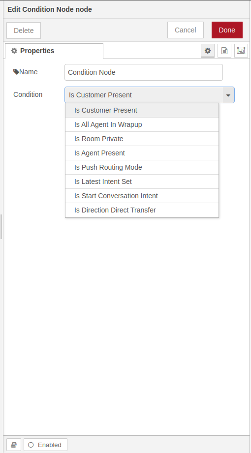 False Output: If the current request fails to meet the specified condition, it exits the condition node through the bottom output and continues on wards in your main flow.