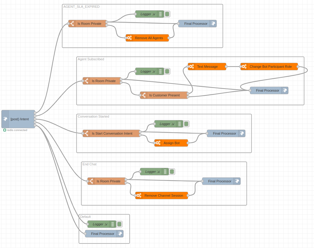 Any flow that started with Initial Processor node, must end with this Final Processor node. This node sends a response back for the request received by Initial Processor node. Unlike Initial Processor node, you can have multiple copies of this node. So you can either end the flow for all intents with a single Final Processor node or with multiple of them.